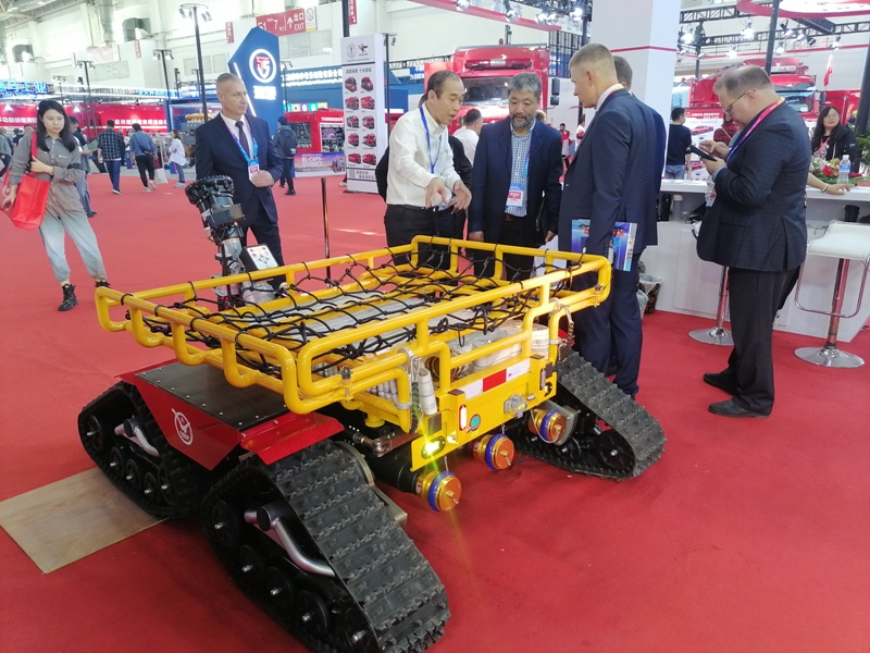 我(wǒ)公司生產的全(quán)地形消(xiāo)防滅火機器人—猛虎,是(shì)國內首家采用四驅履帶輪(lún)式全地(dì)形越(yuè)野底盤的機(jī)器人生產廠家(jiā)。目前在已服役的消防救援隊伍中有極(jí)高的評價,是上(shàng)一屆展會的明星產品。