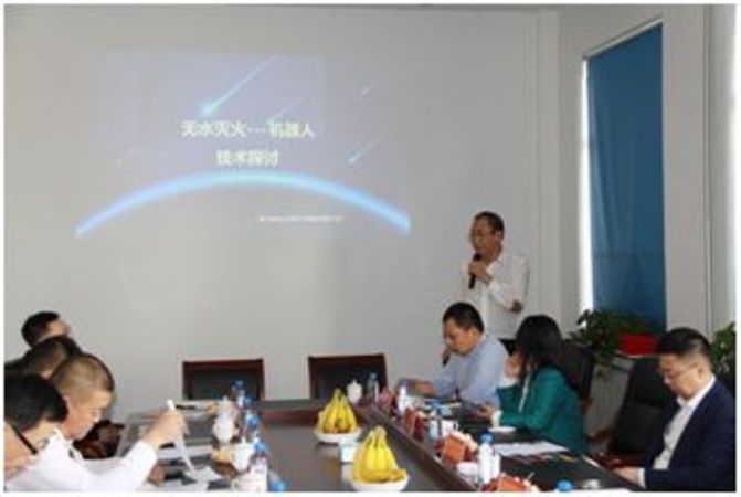 研討會(huì)上,遼寧衡業集團張鳳清董事長對市(shì)、區領導、高校教授及消防(fáng)領域專家的到來表示了熱烈的歡迎。鞍山衡業專用汽車製造有限公司謝奕波董事長對國內外消防(fáng)滅火機器人的現狀進行了匯(huì)報,並對未來機器人技術與現場專家進行了深入的探討,重點探討了(le)無水滅火機器人技術的(de)可行性以及鞍山衡業(yè)專用汽車製造有限公司麵臨關鍵性技術難題,並希望與(yǔ)高校和相關企業實現合作,攻克難題。經過探討,鞍山衡業專用汽車製造有限公司分別與西安交通大學、遼寧工業(yè)大學和蘇州新鼎應急裝備(bèi)科技有限公司達成合(hé)作,並(bìng)簽署了產學研合作協議。