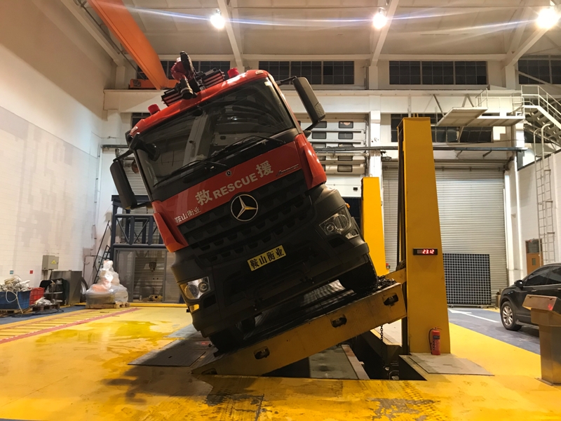 車輛底盤為德國奔馳Arocs4158底盤,發(fā)動機型(xíng)號OM473LA,功率:425kw,國六排放標(biāo)準,軸距:1750mm+4600mm+1350mm,罐體(tǐ)材質(zhì):采(cǎi)有優質不鏽(xiù)鋼板304;容罐容量:水15000kg,泡沫3000kg;消防泵為美國大力,型號為ZSP2650;流量:10000L/min;負壓式泡沫比例混合器,型號為英(yīng)國FSA;舉升臂頂端消防炮Ⅰ,型號:3482+5177美國阿密隆,流量80L/S,射程:水≥80m,泡沫≥70m;車體尾部消防(fáng)炮Ⅱ,型號(hào):DICODOPLUS 150法國博克,流量:10000L/M,射程:水≥110 m,泡沫≥100m,大(dà)流量消防槍,車頂前部設有舉升高度為12米的臂架。 整(zhěng)車器材箱卷簾門防水槽采用專用鋁(lǚ)合金(jīn)開(kāi)模型材,型材上(shàng)加裝(zhuāng)LED照明燈(dēng)帶,使整車形成環(huán)繞式照明,既美觀且照明效果又好。車頂前部(bù)設有舉升高度為12米的臂架,頂端加裝有進口電控消防炮。車頂後部設有進口電控大(dà)流量消防炮。箱體內部器材框架采取了(le)專用的的擋板型材,有效的保證了(le)內部器材固定的穩定性,同時使器材標牌整齊化一,清晰明了。車頂兩(liǎng)側女兒牆內部加裝有LED照(zhào)明燈帶,可滿足夜間工作人員在車頂操作時對照明(míng)需求(qiú)。配備大流量消防槍(qiāng),可噴射水(shuǐ)、泡沫、等滅火介質,滅火效率極高。
