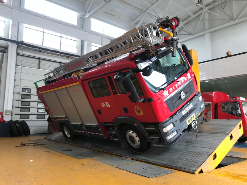 車(chē)輛底盤為ZZ5207TXFV471GF5底盤,發(fā)動(dòng)機型號MC07H.35-60,功率為(wéi)257kw,國六排放標準,軸(zhóu)距(jù)4500mm,罐體材質采用采用優質304不鏽鋼板,容罐容量:水3600kg+B類泡沫900kg+A類泡沫200kg;消(xiāo)防泵為KSP1000(美國大力);壓縮空氣泡沫係統:品牌:美國大力,型號:KSPBC1000/220型,型式:全自動(dòng)集成(chéng)式壓縮空氣A類泡(pào)沫係統,消防(fáng)炮為PLKD48手動及電控,升降照明(míng)係統YZH6-4.83CFA,牽引絞盤係統(tǒng)為杭州天銘FHW16500 整車器材箱卷簾門(mén)防水槽采用專(zhuān)用鋁合金開(kāi)模型材,型材上加裝LED照明(míng)燈帶,使(shǐ)整車形成環繞式照明,既美觀且照明效果又好。器材箱(xiāng)卷簾門下部翻轉踏板,采用一體式(shì)鋁合金擠壓型材,模塊化組裝,增加了(le)整車的品質。箱體內部器材框架采(cǎi)取了專用的的擋板型(xíng)材,有效的保證了內部器材固定的穩定性,同時(shí)使器材標牌整齊化一,清晰明了。壓縮空(kōng)氣係統采用美國大力集成式係(xì)統,結構(gòu)緊湊、性能優良、操作簡便統一空間利用率高。空壓機流量為(wéi)國內目前CAFS係統中最大流量,可達105L/S,更好地滿足於壓縮空氣泡沫係統(tǒng)性能(néng)需求。